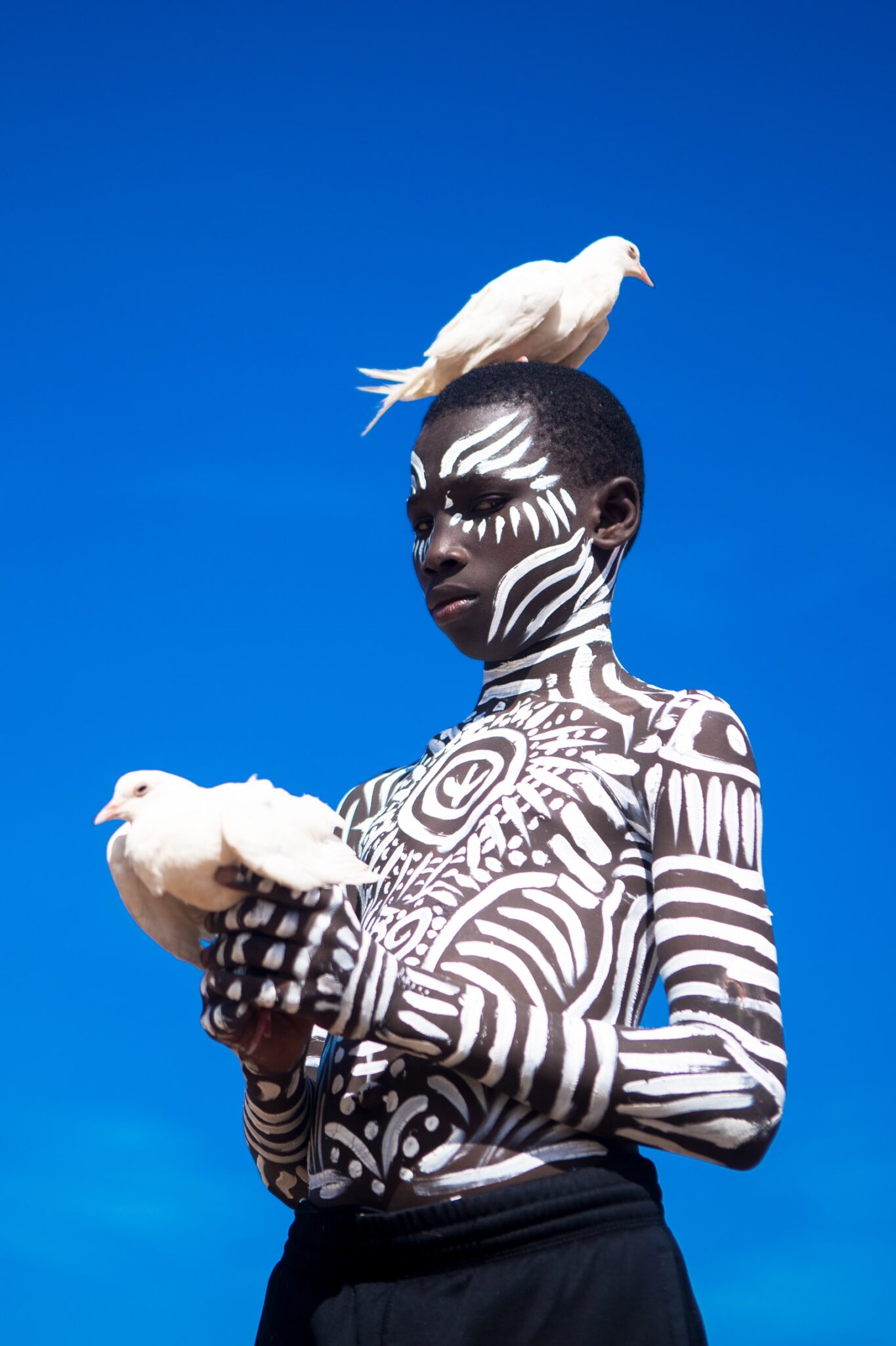 The piece is centered around a young boy who has a special connection with birds. The piece symbolizes the idea of youth and innocence, and the importance of preserving these qualities in a world that can sometimes be harsh and unforgiving. The image of the birds represents freedom, beauty, and the untamed spirit of nature.